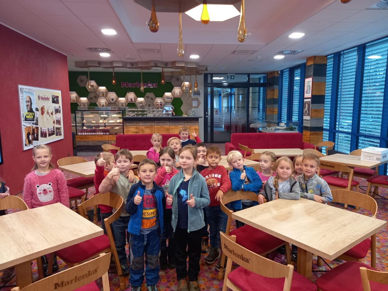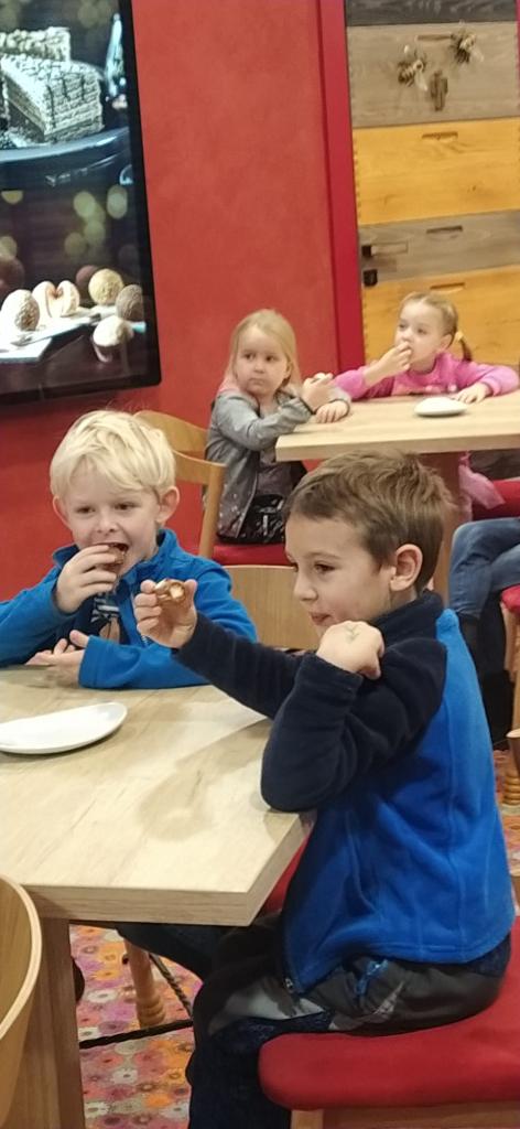V úterý 19. 11. 2024 se ráno naše třída "Sluníček" vydala autobusem do Frýdku-Místku na výlet do firmy Marlenka, která vyrábí medové dorty a jiné dobroty. Už jak jsme vystoupili z autobusu, tak jsme cítili tu sladkou vůni, která se linula kolem budovy.