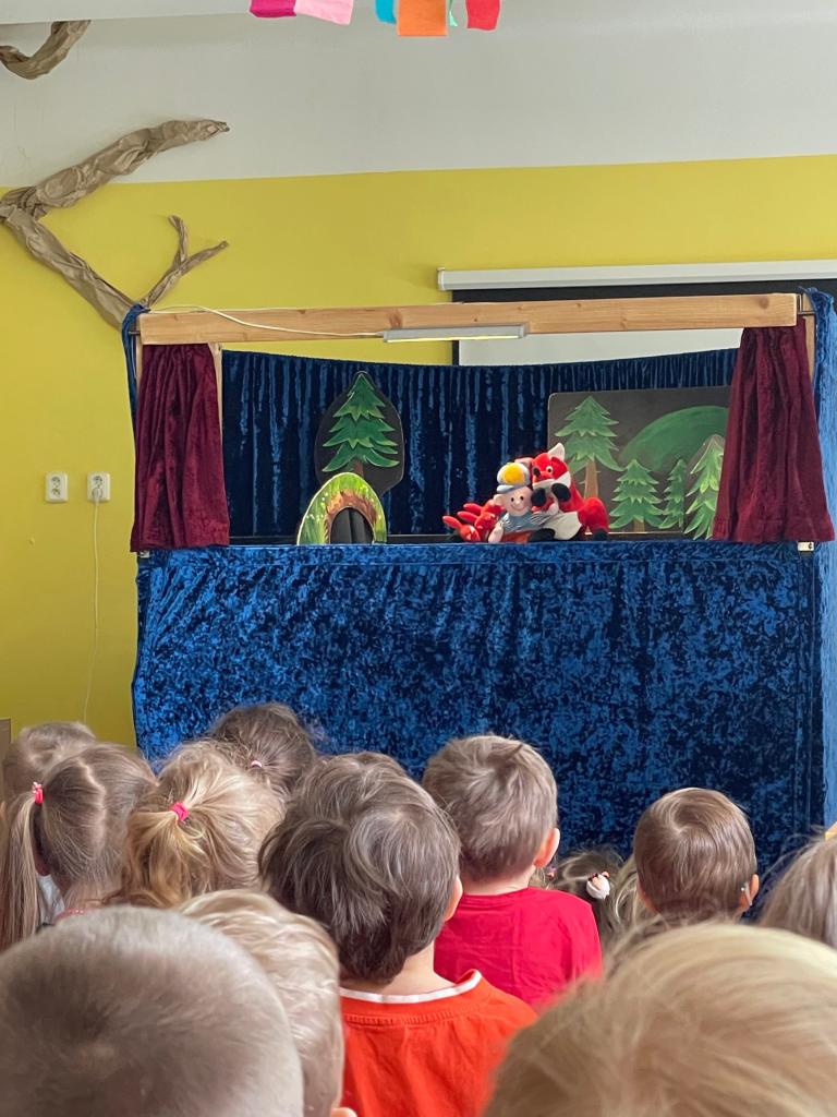 V pondělí k nám do školky zavítalo Maňáskové divadlo Šternberk. Děti ze tříd Kuřátek, Hříbečků a Sluníček měly možnost shlédnout hned tři krásné pohádky, a to: Budka v poli, O Budulínkovi a Máša a medvěd. Pohádky byly doprovázeny lidovými písněmi, ke kterým se děti velmi rády přidaly a zazpívaly si spolu s maňásky. Po představení si děti mohly maňásky prohlédnout a pohladit.