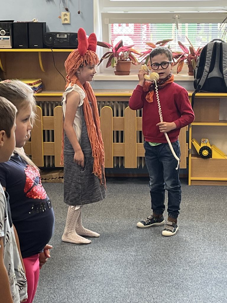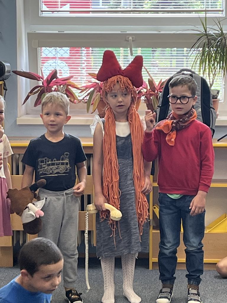 Paní učitelku si "střihla" Zoe Špačková a pana Humla ztvárnil Jinřich Jarotek. Sólovým zpěvem zapůsobil na diváky Tobiáš Čermák a ostatní děti mu vytvořily pěvecký sbor, ve kterém vystoupily: D. Horňák, K. Nagyová, G. Šimíčková, J. Caloň, V. Břemková, D. Matula, N. Bolomová, J. Grossmannová, Š. Kuboš a D. Řeháček. Všem vystupujícím dětem a přítomným rodičům děkujeme za podporu a spolupráci. Přejeme hodně úspěchů ve škole a krásné prázdniny.